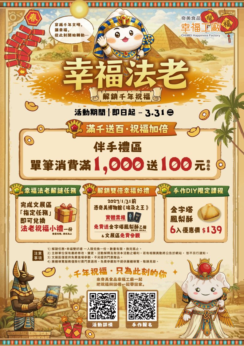 即日起至 2027/1/31 止,憑《埃及之王:法老》展覽實體票根,即可至服務台兌換: